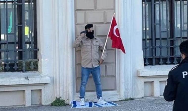 وأقدم رجل أجنبي اليوم الأحد في حوالي الساعة الواحدة ظهرًا بتوقيت تركيا على الترجل من سيارته وإلقاء العلم الإسرائيلي أرضا من ثم الوقوف عليه حاملا العلم التركي وهو يصوب المسدس على رأسه.