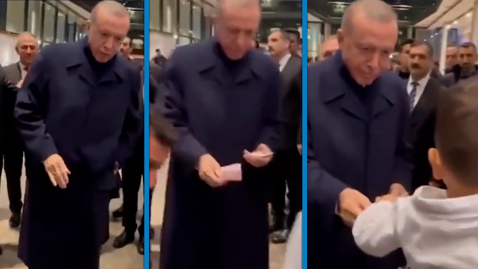 ورغم أن الحدث كان قبل حوالي ستة أيام، انتشر اليوم الخميس، مقطع فيديو للرئيس أردوغان وهو يعطي لكل طفل 200 ليرة تركية من حزمة أخرجها من جيبه.