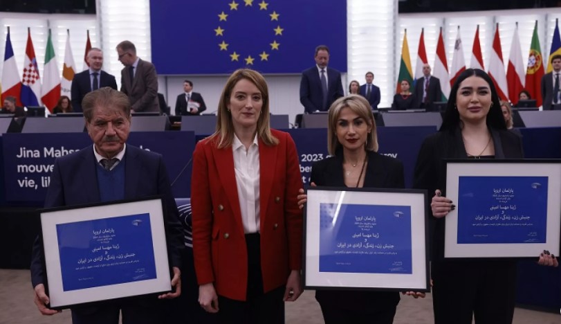 وفي البرلمان الأوروبي، تم منح جائزة ساخاروف للشابة الكردية الإيرانية مهسا أميني، التي قتلت العام الماضي على يد الـشرطة الأخلاقية الإيرانية.