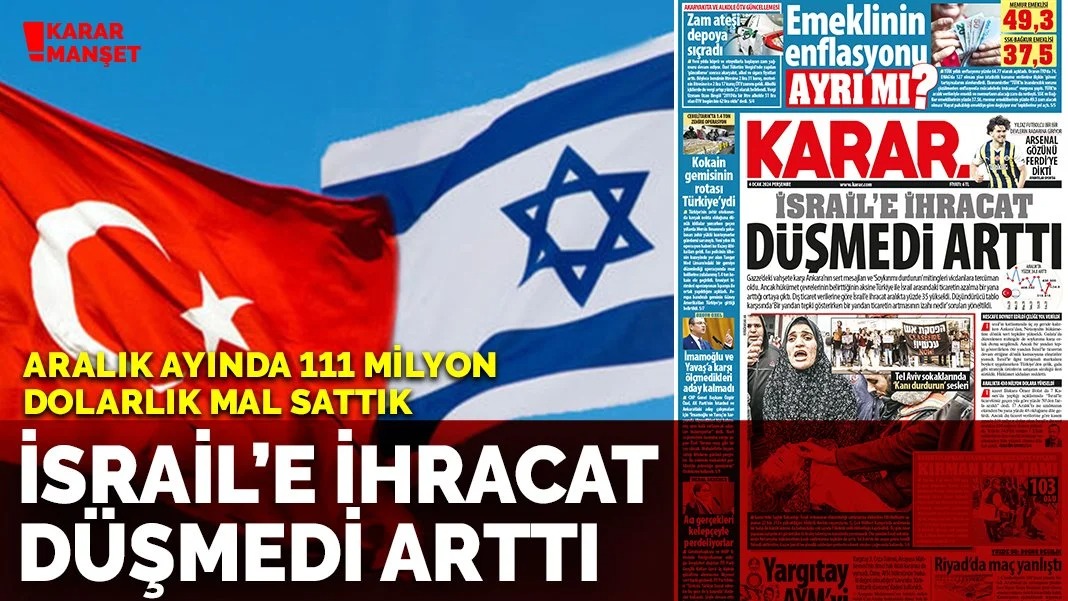 وفقًا لبيانات وزارة التجارة، فإن الصادرات التركية إلى إسرائيل، التي بلغت 319.5 مليون دولار في نوفمبر، ارتفعت في الشهر الثاني من الحرب على غزة، بنسبة 34.8 بالمائة في ديسمبر إلى 430.6 مليون دولار.