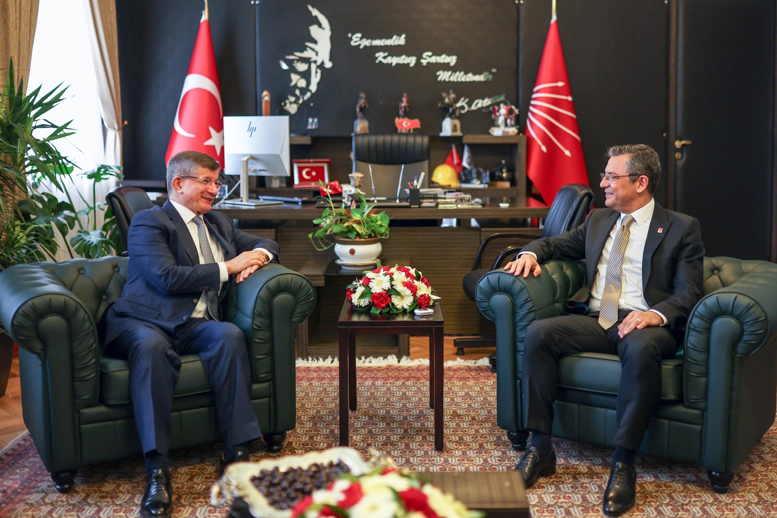 وشارك باللقاء كل من رئيس كتلة حزب المستقبل بالبرلمان، سلجوق أوزداغ، ونائبي رئيس حزب الشعب الجمهوري، علي ماهر بشارير وجوكهان جونايدن.