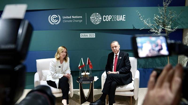 ووقبلةفترة، التقت رئيسة الوزراء الإيطالي ميلوني والرئيس أردوغان في قمة COP28 في دبي.