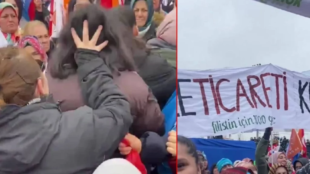 أنقرة (زمان التركية) – اعتقلت السلطات في تركيا أشخاص رفعوا لافتة تطالب الحكومة بـ “قطع التجارة مع إسرائيل”، خلال مؤتمر انتخابي في العاصمة أنقرة بحضور الرئيس رجب طيب أردوغان.