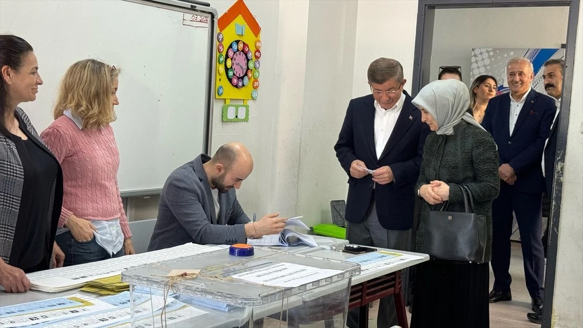 داود أوغلو يصوت في الانتخابات البلدية رفقة قرينته