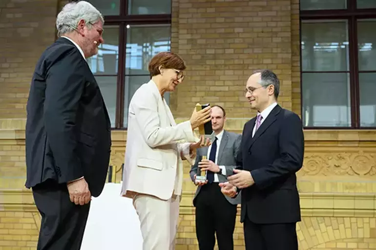 وتسلم فاتح إلداي جائزته من وزيرة التعليم والبحث الاتحادية بيتينا ستارك-فاتسينغر، والجائزة المعنية هي جائزة الأبحاث الألمانية التي تقدم أعلى مستوى من الدعم المالي.