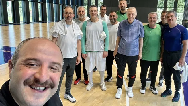 أردوغان يلعب مباراة سلة بعد عودته من الخارج
