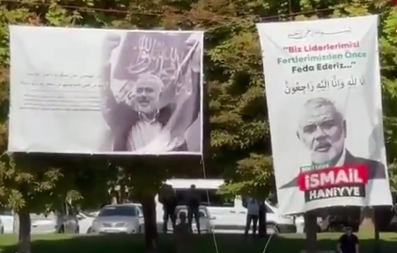 كجزء من احتفالات عيد النصر في 30 أغسطس، تم تعليق صورة هنية زعيم حماس الذي قتل في إيران في الساحة التي ستقام فيها الاحتفالات في غازي عنتاب.