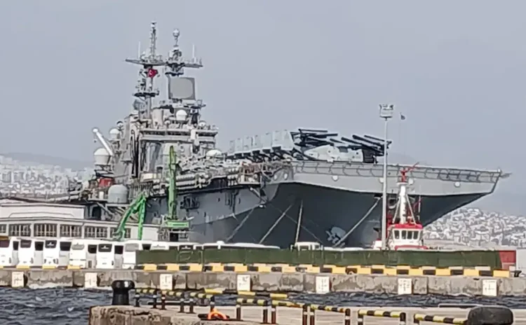 أنقرة (زمان التركية) – رست السفينة الهجومية البرمائية يو إس إس واسب USS Warp، إحدى السفن التي أرسلتها الولايات المتحدة الأمريكية إلى المنطقة لحماية إسرائيل، في ميناء إزمير اليوم.