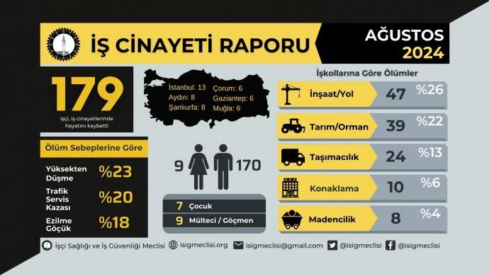 نشرت جمعية صحة العمال وسلامة العمال (ISIG) تقريرها حول جرائم القتل العمالية في شهر أغسطس، مشيرة إلى أن ما لا يقل عن 179 عاملاً فقدوا حياتهم في شهر أغسطس.