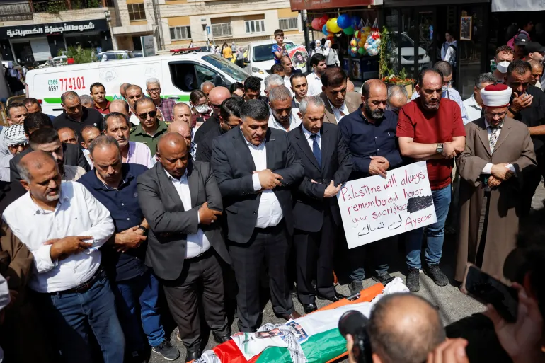 وحضر الجنازة يوم الاثنين عشرات الأشخاص، من بينهم مسؤولون بارزون في السلطة الفلسطينية، وحملت قوات الأمن جثمان عائشة نور إيزجي إيجي الذي كان ملفوفاً بالعلم الفلسطيني، ومغطى بوشاح تقليدي مقلّم بالأبيض والأسود.