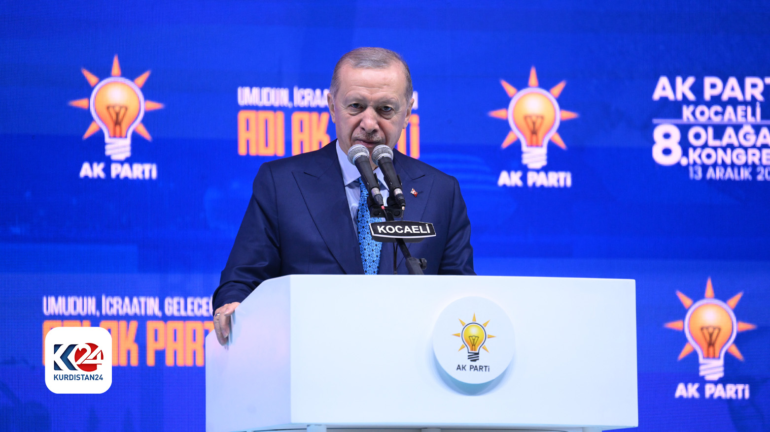 وقال أردوغان موجها الحديث إلى رئيس حزب الشعب الجمهوري أوزغور أوزيل ”لقد قام حزب الشعب الجمهوري بدور المحامي عن حزب الاتحاد الديمقراطي/وحدات حماية الشعب، خرج السيد أوزيل وحاول الضغط علينا بسبب حزب الاتحاد الديمقراطي، موقفنا واضح من امتدادات المنظمة الإرهابية الانفصالية في سوريا، أنت من دعمت وحدات حماية الشعب”.