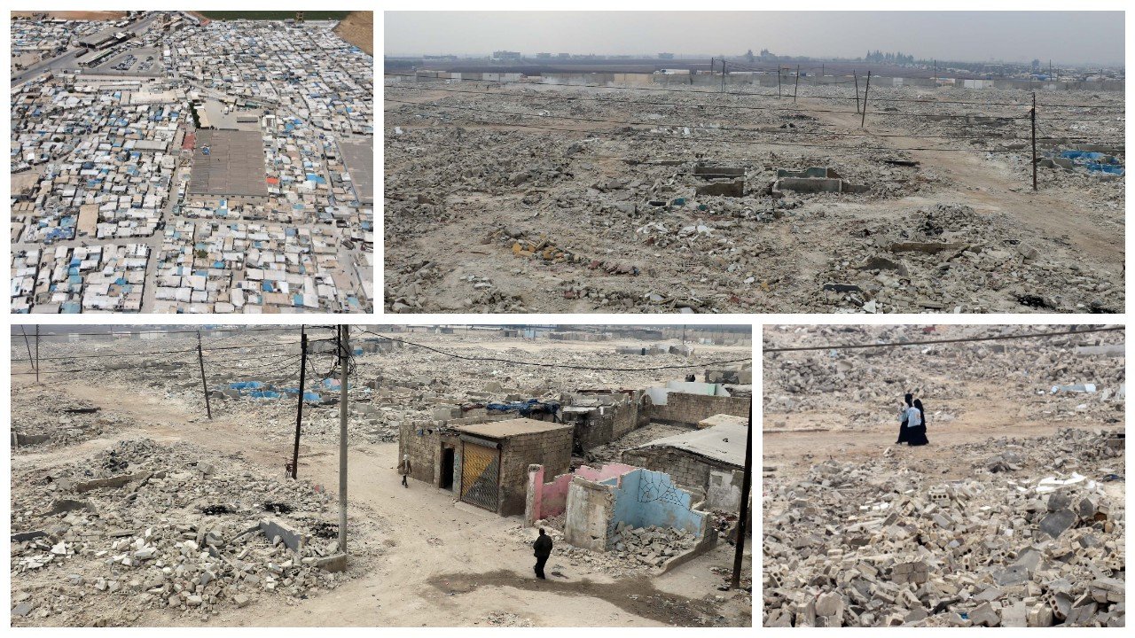 وبعد عودة السوريين إلى منازلهم، تُركت المنطقة التي كانت تتواجد فيها آلاف الخيام في الماضي مع ركام الفحم الحجري والحجارة لمنع انهيار الخيام.