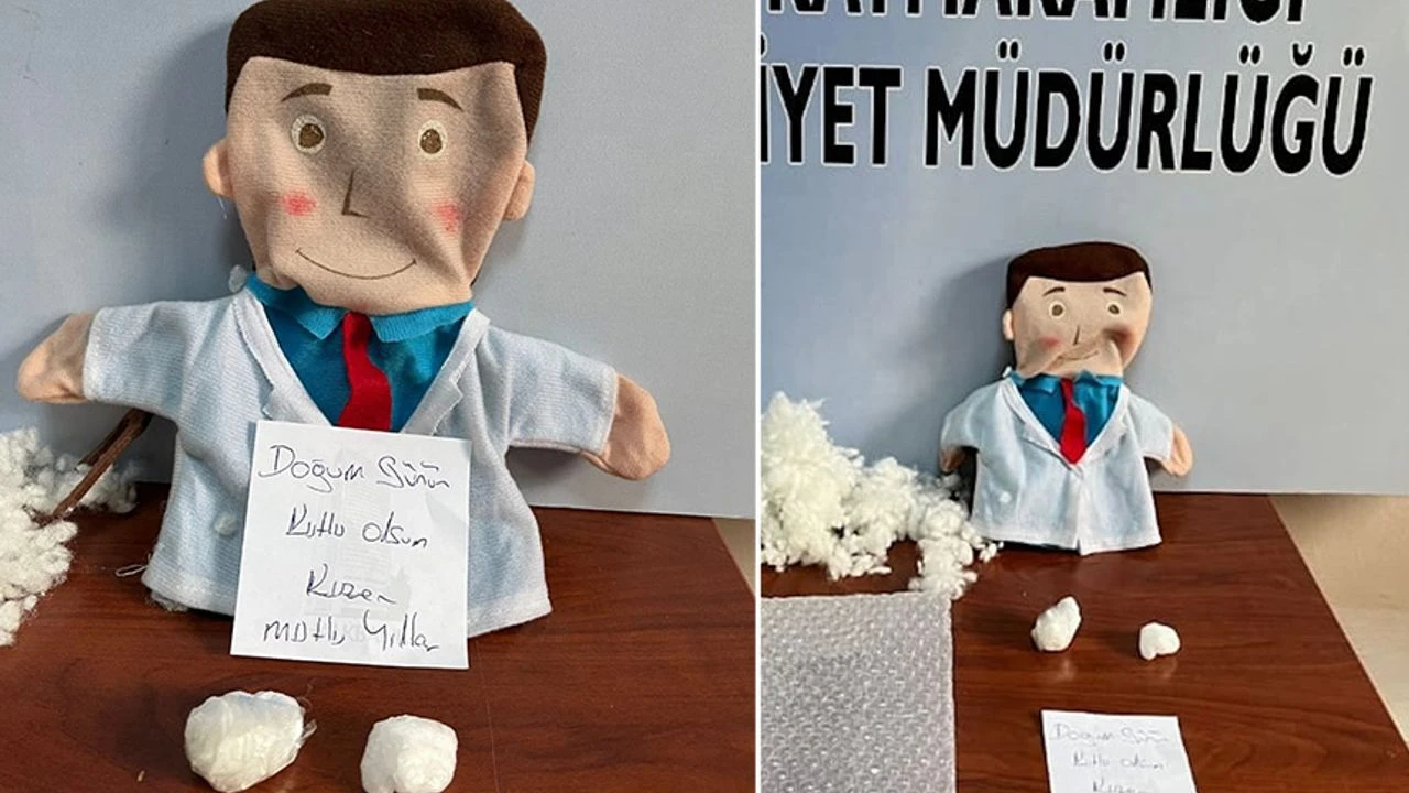 وعند فتح الطرد، تم العثور على دمية من القماش مكتوب عليها عبارة ”عيد ميلاد سعيد يا ابن العم، عيد ميلاد سعيد“.