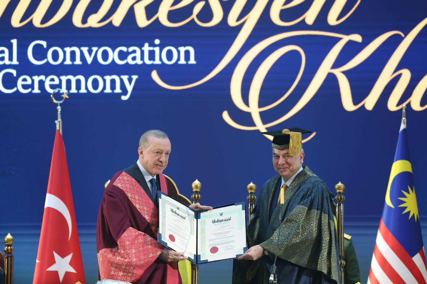 وفي إطار البرنامج، توجه أردوغان إلى مركز بوتراجايا الدولي للمؤتمرات. وقد مُنح أردوغان شهادة الدكتوراه الفخرية هنا. وتم إنشاد النشيدين الوطنيين لتركيا وماليزيا في الحفل.