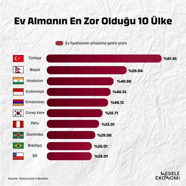أنقرة (زمان التركية) – تحتل تركيا المرتبة الأولى عالميًّا في قائمة الدول التي يصعب فيها امتلاك منزل بسبب الأثمان الباهظة.