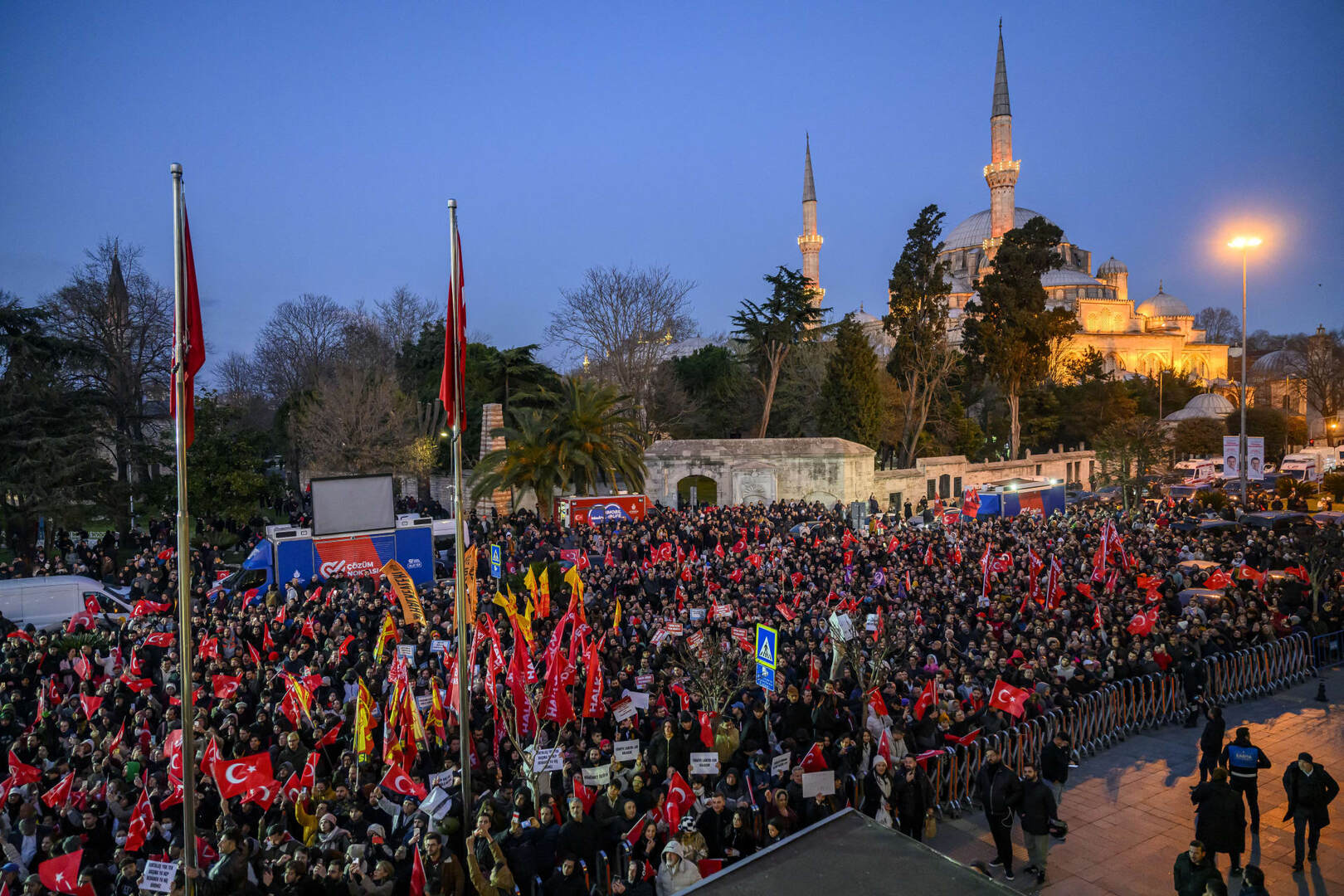 التجمع الذي حمل شعار “التجمّع الجماهيري الكبير: الحرية لمرشحنا الرئاسي أكرم إمام أوغلو”، بعث برسالة واضحة مفادها أن المعارضة لن تتراجع، وستواصل التصعيد منذ لحظة توقيف إمام أوغلو في 19 مارس، وحتى اعتقاله رسميًا بعد أربعة أيام.