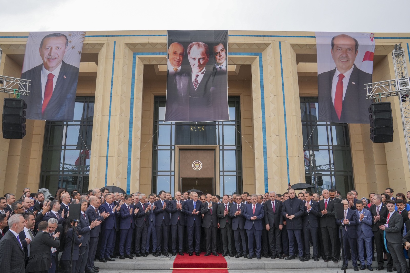 وفي حفل الافتتاح، ألقى أردوغان كلمة أمام الحضور، حيث أكد أن المبنى الجديد، الذي استغرق بناؤه ثلاث سنوات، قد تم تشييده من حجارة قبرص. وتبلغ المساحة الإجمالية للمجمع الرئاسي 640 ألف متر مربع، منها 55 ألف متر مربع مساحة مغلقة، وسيُستخدم كمقر جديد لرئاسة الجمهورية والبرلمان. كما يشمل المجمع حديقة وطنية تبلغ مساحتها 452 ألف متر مربع ومسجدًا يتسع لـ2000 مصلٍّ.