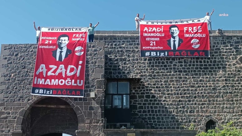 قام أعضاء من فرع حزب الشعب الجمهوري في ديار بكر بتعليق اللافتات المطالبة بالإفراج عن عمدة بلدية إسطنبول السابق أكرم إمام أوغلو، الذي يقضي حكماً بالسجن في سجن مرمرة بمنطقة سيلفري، ويعد المرشح الرئاسي عن الحزب.