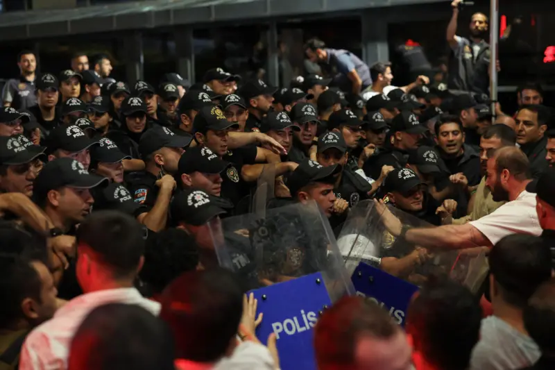 وأظهرت اللقطات المصورة من المكان وقوع مناوشات بين الحشود وقوات مكافحة الشغب، حيث حاول المتجمّعون تجاوز الحواجز الأمنية. كما مُنع نواب من حزب الشعب الجمهوري وآخرون قدموا للتضامن من المرور، وأفادت الأنباء بأن الشرطة استخدمت الغاز المسيل للدموع لتفريق الحشود.