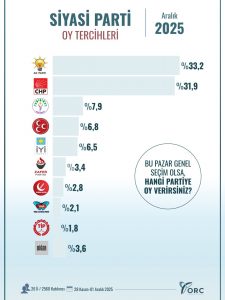 أنقرة (زمان التركية) – كشفت نتائج استطلاع رأي عن تصدر حزب العدالة والتنمية الحاكم القائمة بنحو 33.2 في المئة من الأصوات.